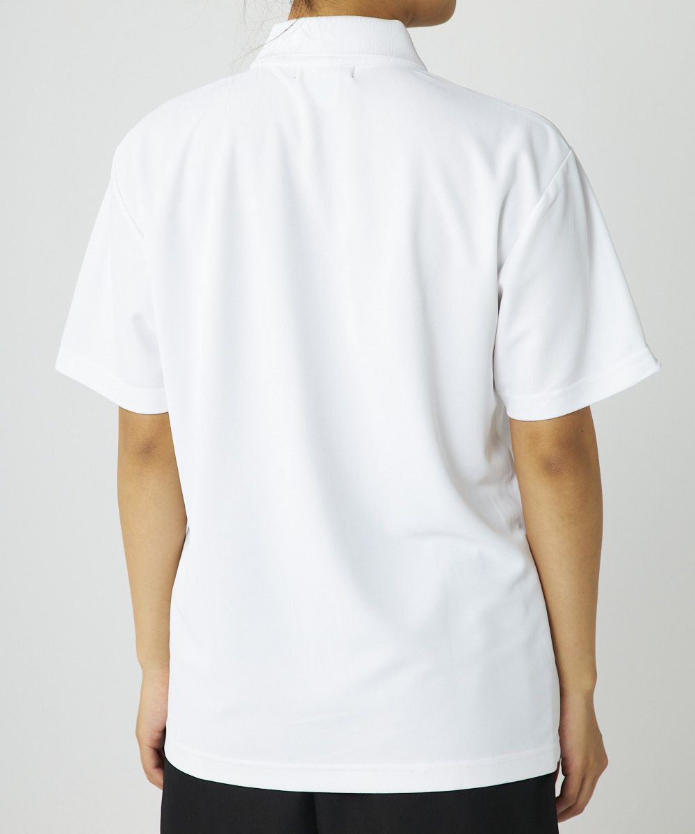 ポリエステル鹿の子を使用した、さっぱりとしたドライタッチの生地。表地は上品な光沢となめらかな風合いで肌ざわりも良く、汗冷えしにくいので快適なウェアで最高のパフォーマンスを実現。ホワイトの生地には透け感を軽減させるため特殊な糸を使用。そして、シワが付きにくく、乾きやすい、繰り返し洗っても色落ちしにくい万能さが何よりも魅力。