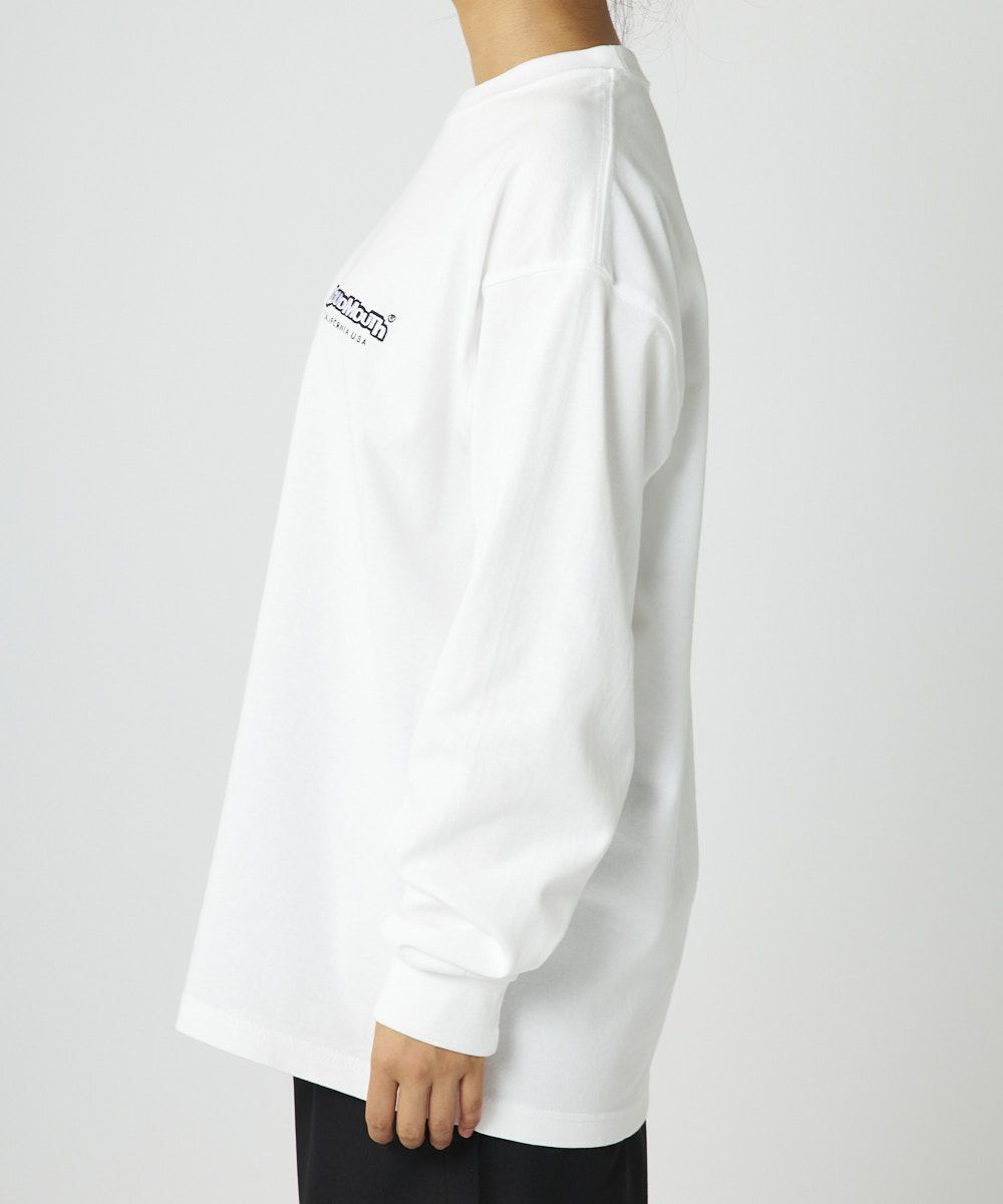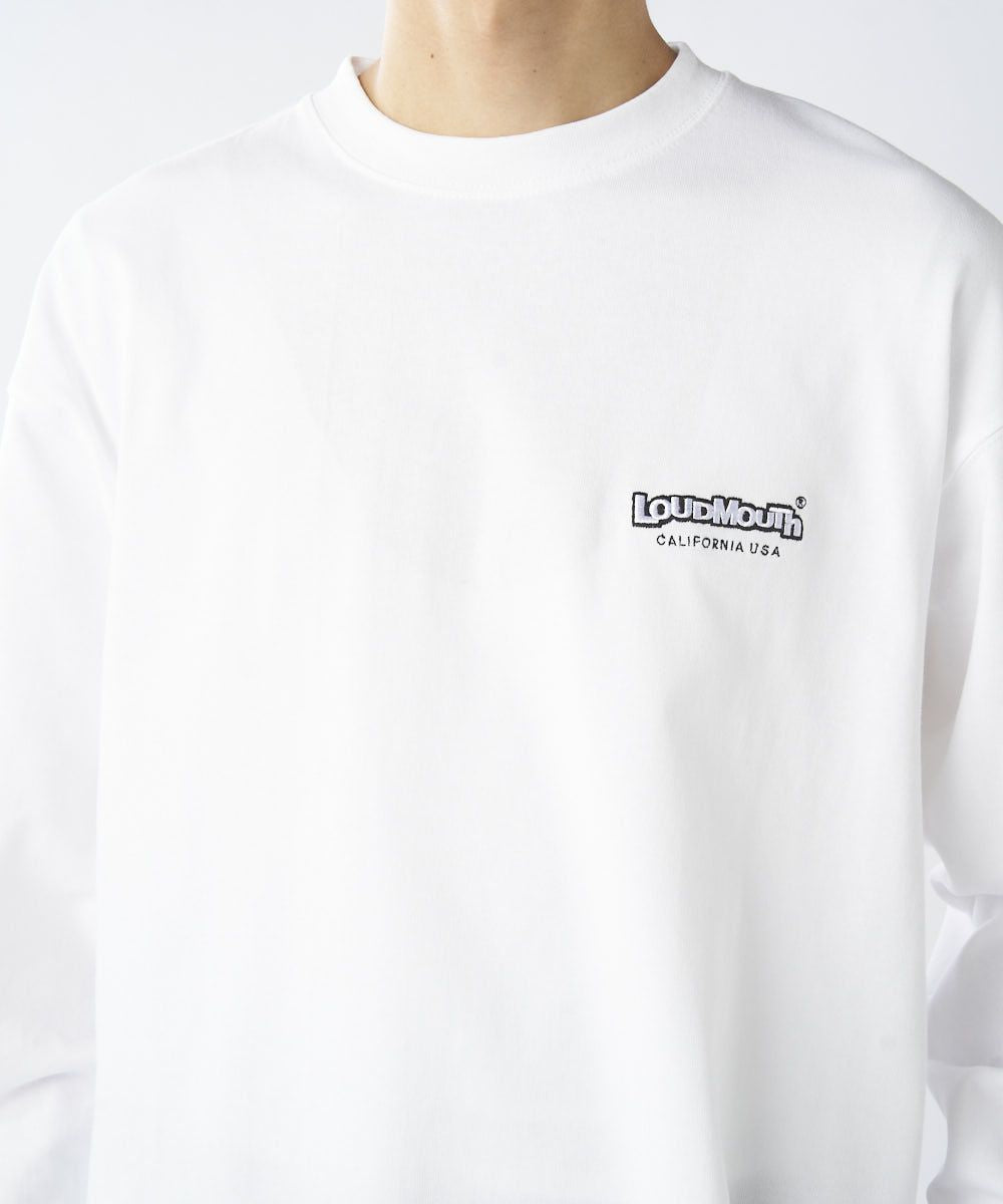 シャリ感のあるオープンエンド双糸を極厚に編み立てたヘヴィーデューティー&アメリカンな生地が魅力の最強ロンT! 「普段からラウドマウスを着用したい」との声にお応えして、胸刺繍のみのシンプルなデザインに。 生地やステッチワークなど、ヴィンテージライクな仕様や、レイドバック感のある袖周りなど、新たな魅力が光る一枚。 シャリ感のある超極厚生地と、大きく着てもだらしなくならない絶妙に調節されたサイズ感が、コーデを格上げすること間違いなし。 オープンエンド糸で編みたてられた生地は着こむほどに独特の味わいを醸し出し、エイジング(経年変化)を楽しむことができます。 ワードローブに一枚は持っておきたいアイテムです。