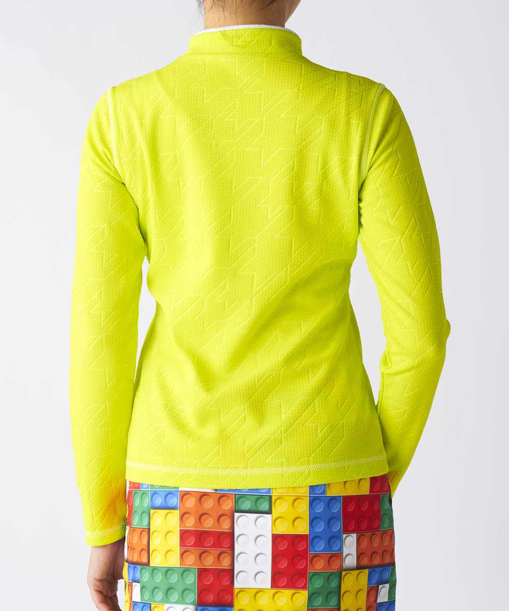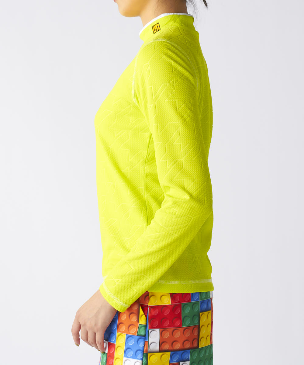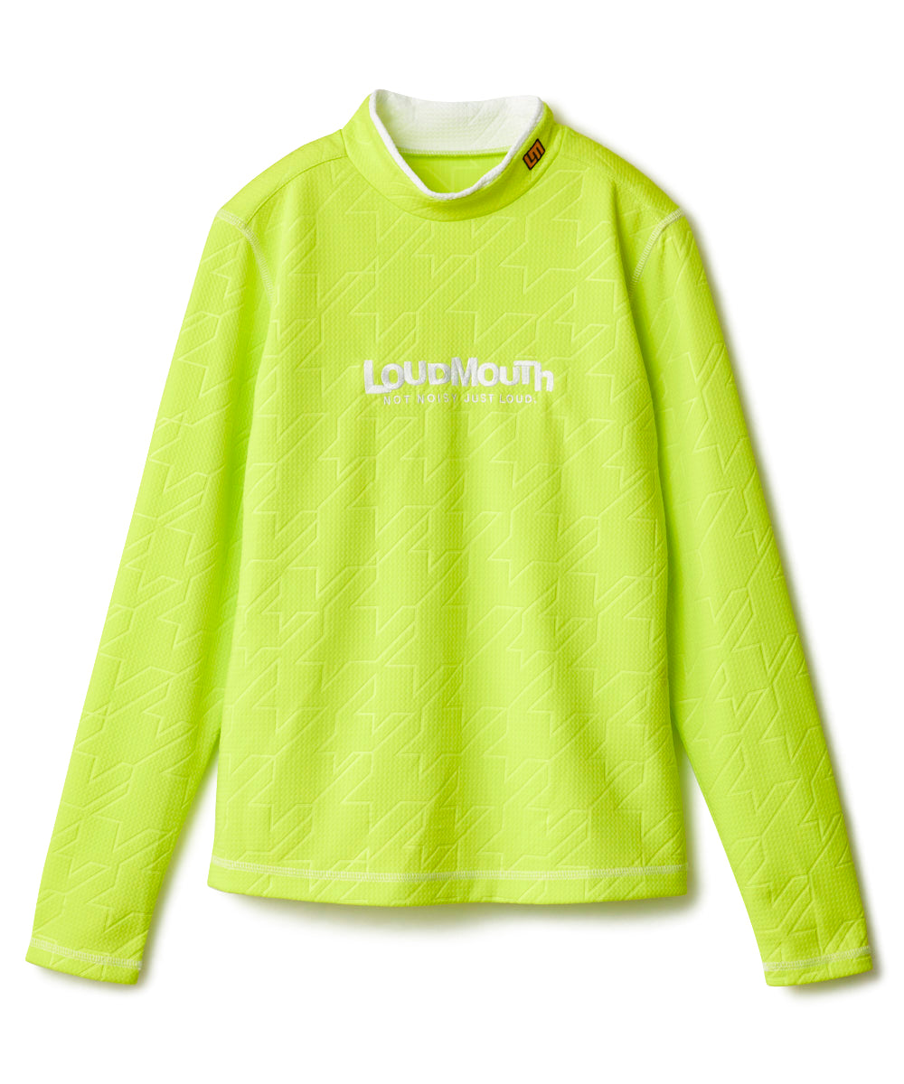 凹凸感のある表面が特徴のモックネック長袖シャツ。