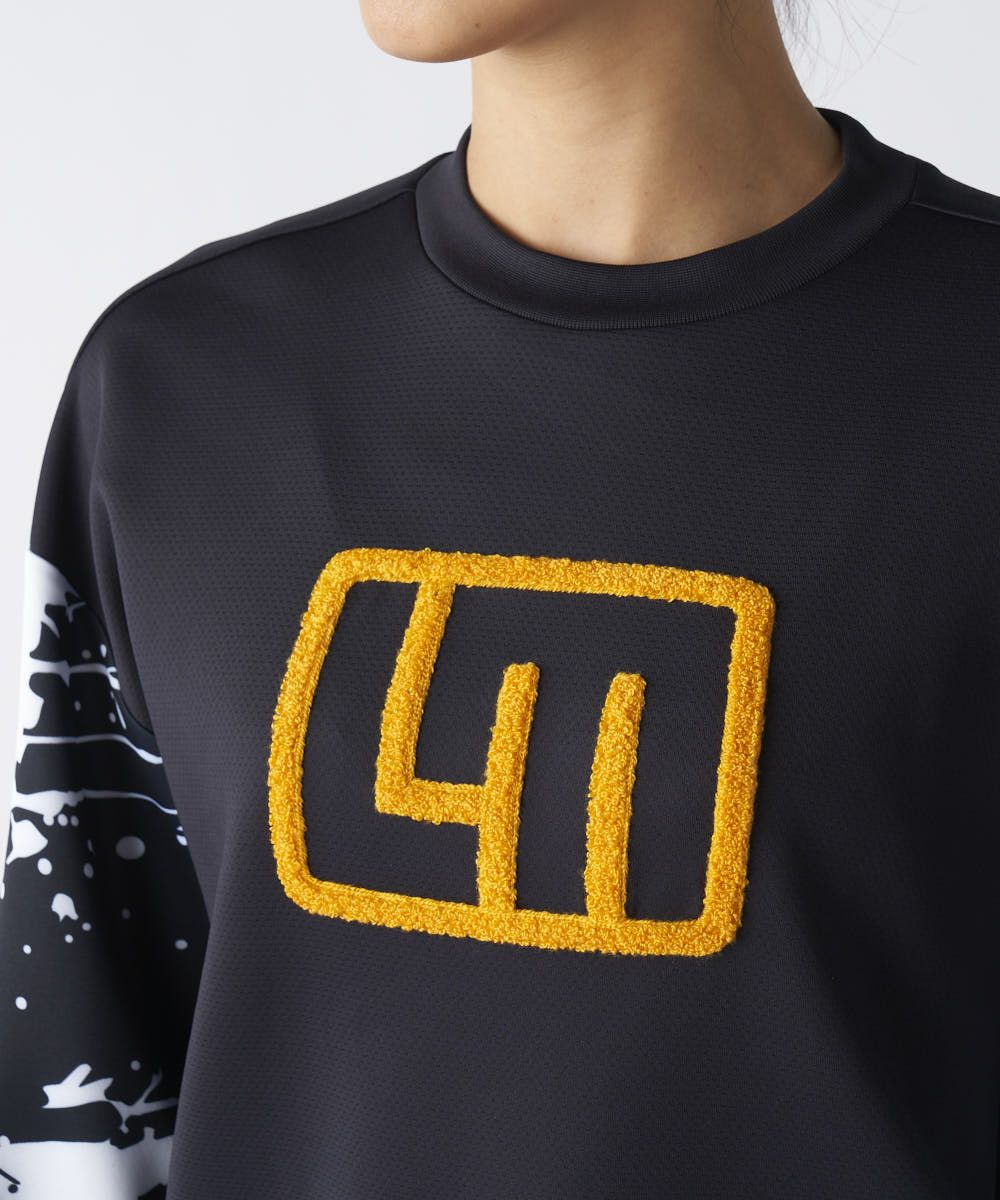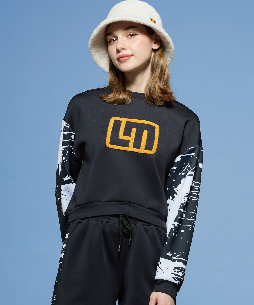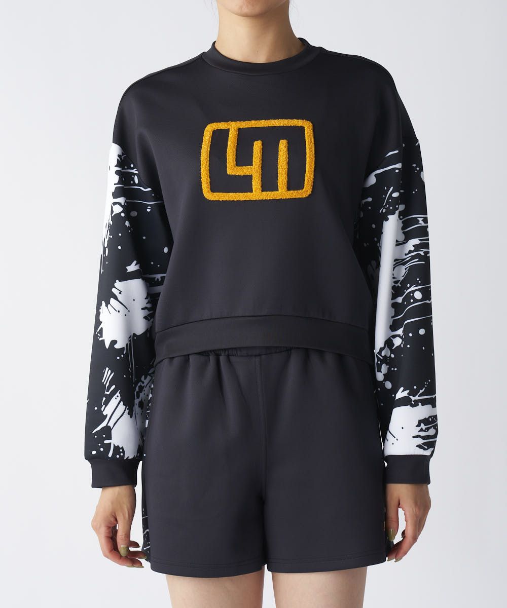 無地部分に表面感のあるオックス調のダンボールニット素材を使用したスウェット。