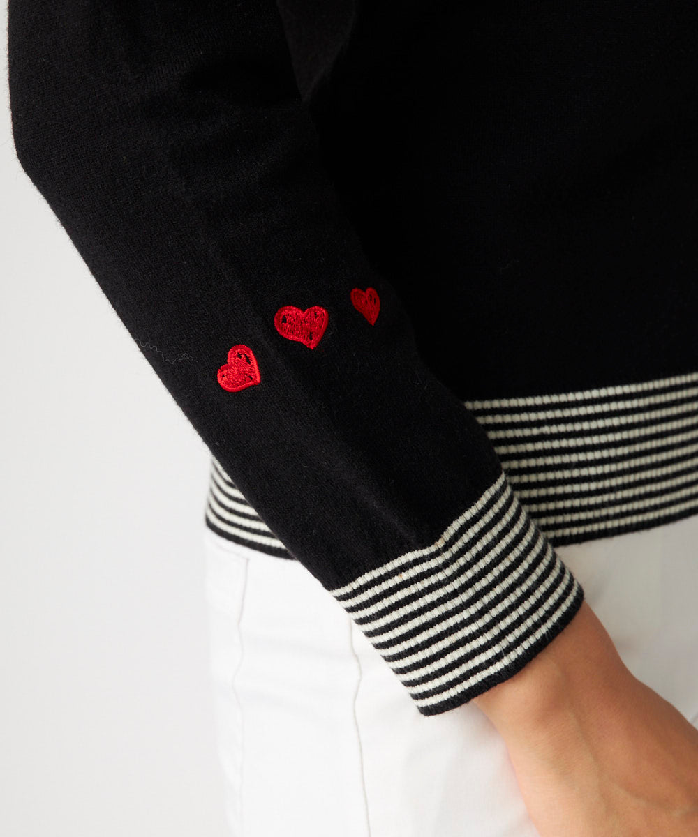 右袖の小さなハートモチーフがコーディネートのアクセントに。